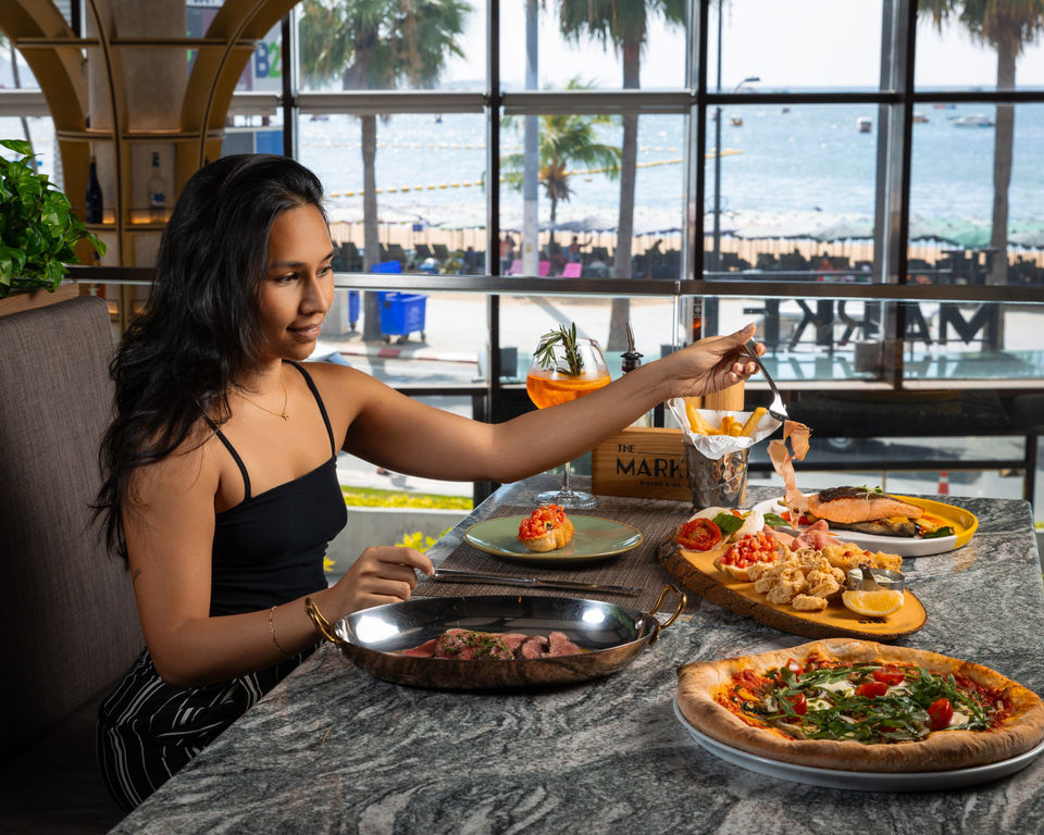 Explore a world of flavors at The Market - Pattaya's new beachfront bistro! Take in stunning ocean views in our relaxed atmosphere. It’s the perfect place to soak up some sun while enjoying Italian classics, juicy steaks & Thai signatures.